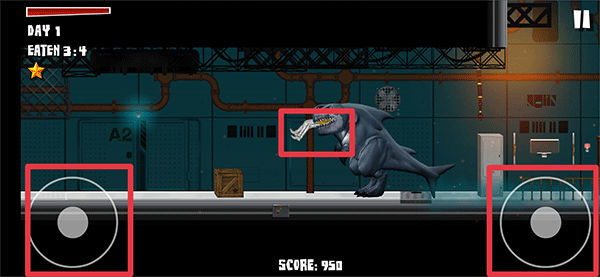 然后通过左边按钮左右滑动控制鲨鱼前进,食人鲨正玩家需要不断的食人鲨正去抓捕更多的敌人才可以让自己变得更加强大