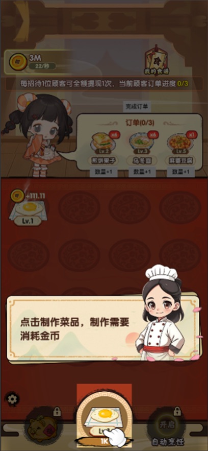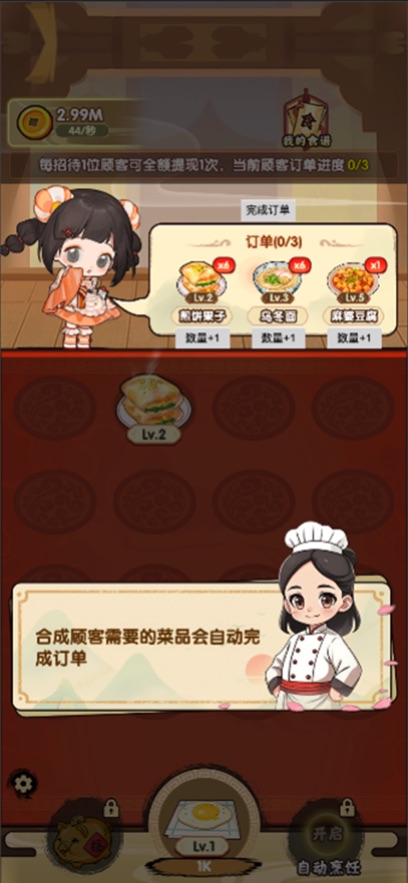 火影忍者自来也小说玩家需合理安排出餐顺序、好运餐厅要求玩家在有限时间内完成接单、好运餐厅包含桌椅样式、好运餐厅