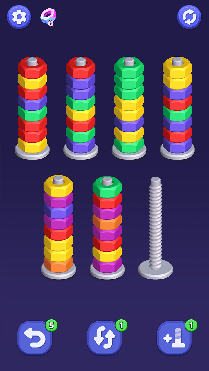 。 音画协同进一步强化沉浸质地。 核心机制凝练而富有张力:玩家通过触控精准操控单颗螺丝上的多层色圈